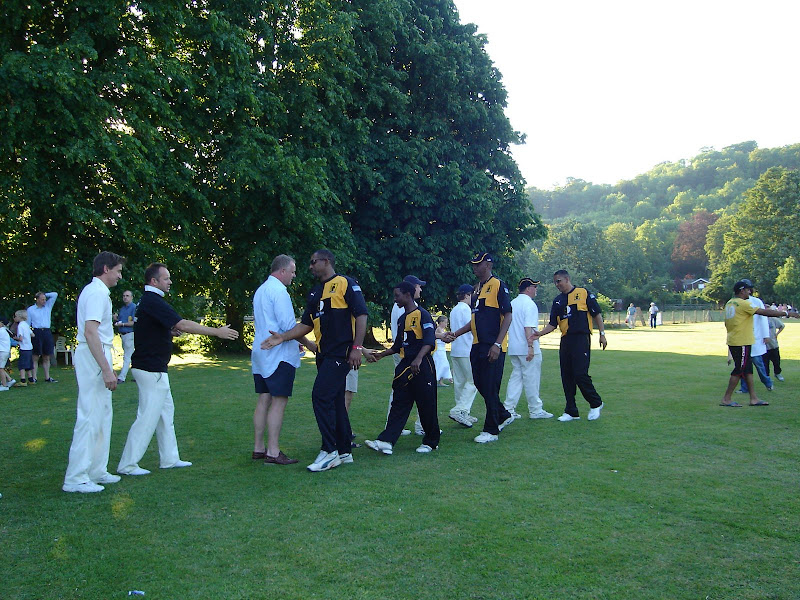 So, for a second week in a row, we nearly came to blows! A feisty competitive encounter where WCC won the toss and batted first on a hard wicket. Good knocks by Woody, Andy M and Cormac saw WCC to 168 all out. Whereas last week we had a very quick bowler the likes of which we hadn’t seen for years at WCC - this week he was usurped by someone even quicker! and it was this bowler who got into the altercation with Woody when he bowled him a very quick bouncer that Woody was able to deflect away from his chin with his gloves - this was close! and led to Woody putting a helmet on! (Not many bowlers have done that!) The ensuing situation led to handbags at 10 paces with their slip and Cormac ( who was umpire) trading niceties! They had a good bowling side and on a very good wicket with the ball coming on we always reckoned we were 30 runs short. The Reading reply started quickly 1 opener acted as an anchor whereas their other opener ( first team league player f...